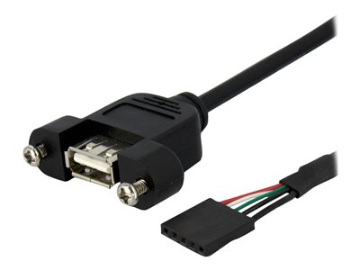 Le câble USB de 91 cm monté sur panneau USBPNLAFHD3 permet d'ajouter un accès facile et sécurisé à un port USB 2.0 de votre PC. Voici une solution pratique pour connecter des clés USB initialisables ou des porte-clés d'authentification à l'adaptateur USB de la carte mère.L'adaptateur comprend un adaptateur de carte mère USB femelle et un port USB A femelle monté sur panneau. De plus, il vous offre une extension de 91 cm, vous permettant ainsi de positionner le câble dans le boîtier de l'ordinateur en fonction de vos besoins.Le modèle USBPNLAFHD3 bénéficie de la garantie à vie StarTech.com, pour une fiabilité assurée.