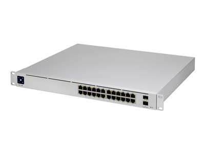 Le Switch Pro 24 PoE (USW Pro 24 PoE) est un commutateur entièrement géré avec 16 ports RJ45 GbE, 802.3at PoE+, 8 ports RJ45 GbE, 802.3bt PoE++ et 2 ports 10G SFP+. L'USW Pro 24 PoE combine un riche ensemble de fonctions de couche 2 avec des outils avancés de couche 3, notamment le routage inter-VLAN, le routage statique et un serveur DHCP. Le USW Pro 24 PoE est le commutateur de couche d'accès idéal pour tout système UniFi. Il combine jusqu'à 400W de puissance PoE avec la redondance d'alimentation SmartPower RPS (USP RPS). Le switch peut également être surveillé et configuré depuis n'importe où grâce à l'application web et à l'application mobile UniFi Network, puissantes et intuitives.