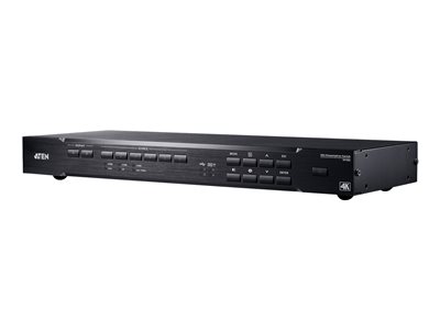 Interfaces | | 6 x entrée HDMI Type A 2 x sortie HDMI Type A 1 x série (RS-232) DB-9 gestion 2 x USB Type B 1 x télécommande (IrDA) mini-jack 1 x entrée DisplayPort 1 x entrée VGA HD-15 1 x entrée vidéo du composant RCA x 3 1 x entrée vidéo composite RCA 1 x entrée audio mini-jack 2 x sortie audio RCA 1 x sortie TOSLINK 1 x sortie audio (coaxiale) digitale RCA 2 x clavier (USB) / souris (USB) Type A console 2 x USB 2.0 Type A console