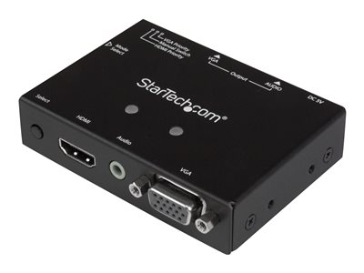 Le commutateur automatique VGA & HDMI VS221HD2VGA vous permet de connecter deux sources A/V distinctes, une VGA et une HDMI au même moniteur ou vidéoprojecteur VGA, et de passer automatiquement ou manuellement d'une source vidéo affichée à l'autre. Ce commutateur à entrées multiples prend en charge les résolutions vidéo jusqu'à 1920x1200 (1080p) et inclut le matériel de fixation pour une installation nette et professionnelle.Un commutateur pour HDMI et VGALe commutateur A/V offre la conversion HDMI intégrée, ce qui vous permet de connecter une source vidéo HDMI ou VGA au même écran VGA, sans devoir utiliser d'adaptateurs ou de scalers supplémentaires. Ce commutateur prend également en charge l'intercommunication EDID, la copie de données EDID et l'émulation EDID pour assurer que les résolutions natives HDMI et VGA soient maintenues entre les deux sources de connexions.Un contrôle sans effortLe modèle VS221HD2VGA garantit un fonctionnement sans effort en prenant en charge la sélection de ports prioritaires, ce qui vous permet de choisir le premier port à sélectionner par séquence. Une fois que l'appareil branché à votre port est activé, le commutateur sélectionnera automatiquement ce port.Concentrez-vous sur votre présentation, pas sur les branchements de la salle de conférenceCe commutateur A/V convient à une utilisation dans les salles de conférence et de classe. Le modèle VS221HD2VGA comporte des entrées VGA et HDMI et peut prendre en charge toute une série d'appareils. Le convertisseur intégré facilite la connexion à un écran sans nécessiter l'utilisation d'adaptateurs supplémentaires. De plus, la commutation prioritaire favorise la collaboration spontanée entre les étudiants et les collègues, car elle permet de partager un vidéoprojecteur entre plusieurs appareils sources.Remarque : les contenus chiffrés numériquement depuis la source vidéo HDMI ne seront pas affichés à l'écran VGA. Les utilisateurs recherchant un dispositif similaire avec une [%product id="VS221VGA2HD" text="sortie HDMI"%] sont priés de se référer au modèle [%product id="VS221VGA2HD" text="VS221VGA2HD."%]Le modèle VS221HD2VGA bénéficie de la garantie StarTech.com de 2 ans et de l'assistance technique à vie gratuite.