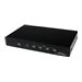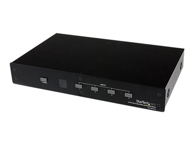 Le commutateur audio/vidéo VGA VS410RVGAA 4 ports avec contrôle RS232 vous permet de basculer entre quatre signaux VGA, ainsi que l'audio correspondant, vers un écran ou un projecteur unique d'une résolution pouvant aller jusqu'à 1920 x 1200 (PC) ou 1080p (HDTV).Solution idéale lorsque les ports d'entrée VGA et audio se font rares, le commutateur VGA vous évite d'avoir à changer les connexions de votre écran et votre récepteur audio, tout en vous permettant de sélectionner rapidement et facilement la source vidéo, avec un simple bouton.Il propose également des fonctions pratiques de commutation à distance grâce à la commande à distance de série RS232 ou infrarouge, qui vous permet de basculer à distance entre les signaux d'entrée VGA, ce qui constitue un apport intéressant aux écrans de présentation, aux salons professionnels, aux environnements de sécurité, etc.Bénéficie de la garantie StarTech.com de 2-ans et de l'assistance technique à vie gratuite.